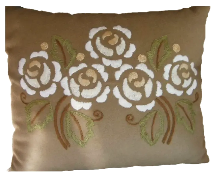 Viisi ruusua koristavat tätä tyynyä, tuoden siihen herkkää kauneutta ja romanttista tunnelmaa. Jokainen yksityiskohta on harkittu huolella, jotta tyynystä tulee paitsi silmiähivelevän kaunis myös pitkäikäinen.