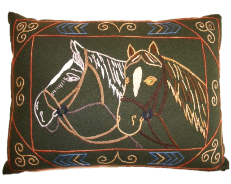 Tässä tyynyssä sinua kurkkii kaksi hevosta. Siinä on herkkää kauneutta ja romanttista tunnelmaa. Jokainen yksityiskohta on harkittu huolella, jotta tyynystä tulee paitsi silmiähivelevän kaunis myös pitkäikäinen.